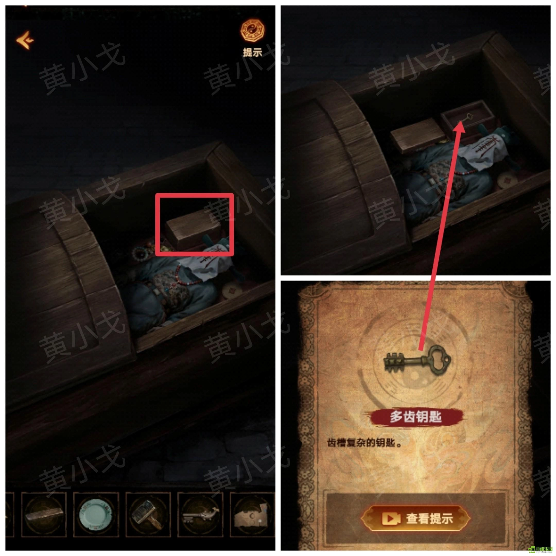 15、打开棺材里的盒子,获得【多齿钥匙】