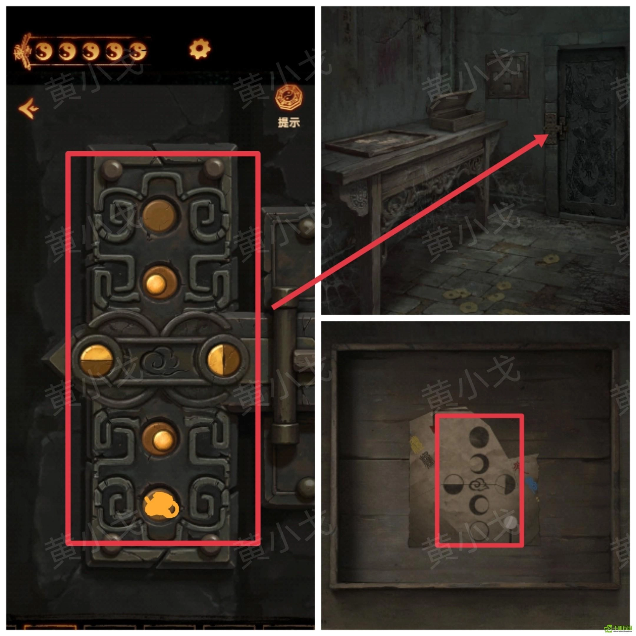 33、点击墙上的暗格,根据木板上的线索,调整机关