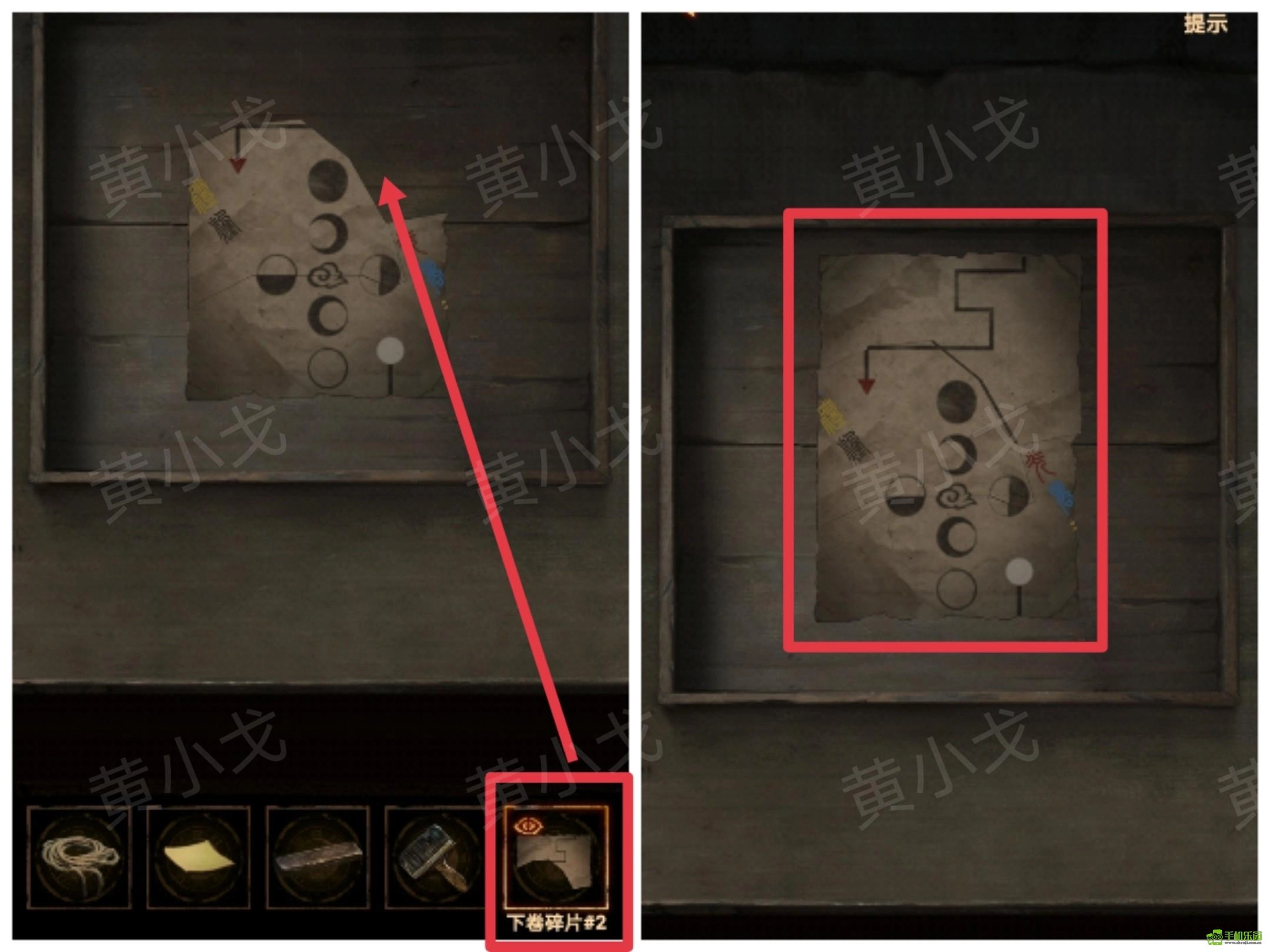 22、把【下卷碎片2】放到木托盘上,与另两张碎片拼合起来,获得线索