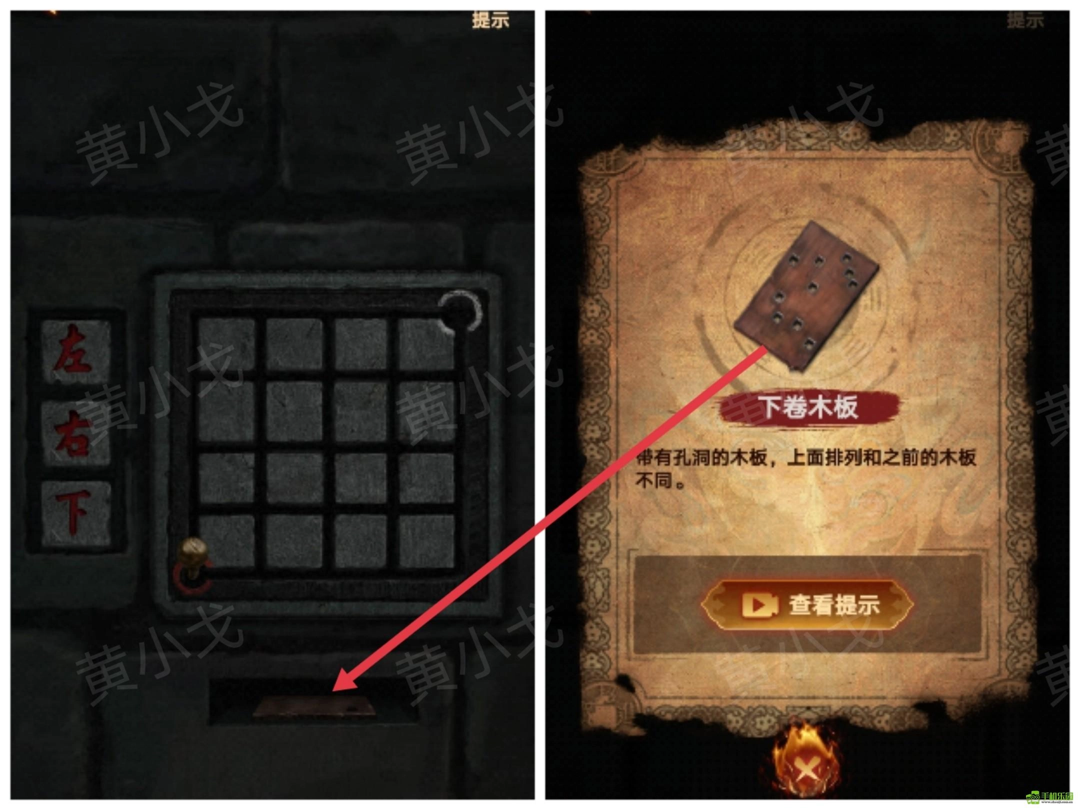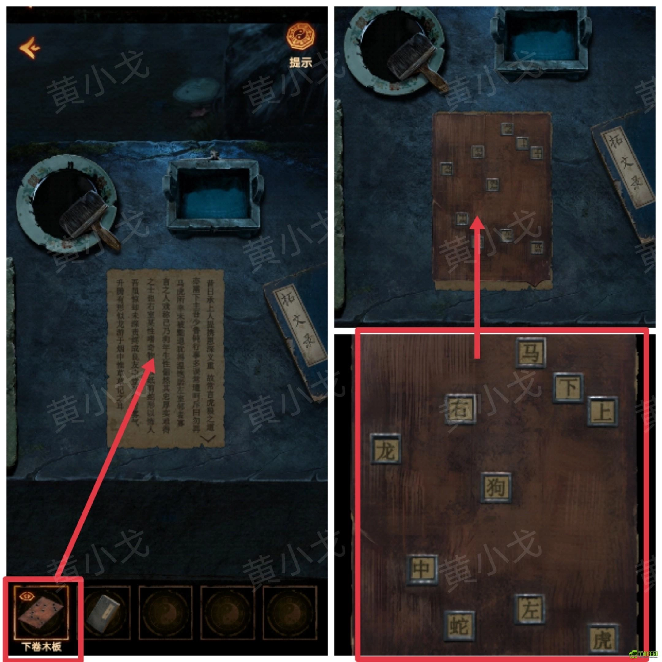 32、放上【下卷木板】,查看木板,获得线索