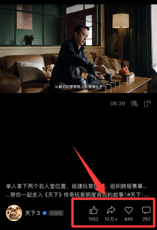 当我在《天下3》视频号看到传奇玩家明度的那部纪录片,推荐点赞评论数据一般般,转发量却是惊人的“10万+”,我偷偷问了官方营销团队,为什么数据这么奇怪?得到的答案是:不是他们干的,没有刷过这个数据,他们也很好奇,完播率和转发量为什么会这么猛?