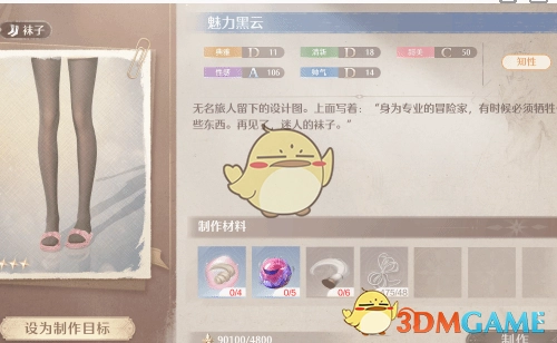4、魅力黑云设计图的制作材料包括:4个贵族卷毛精粹、5个磐岩晶石·坠落等。