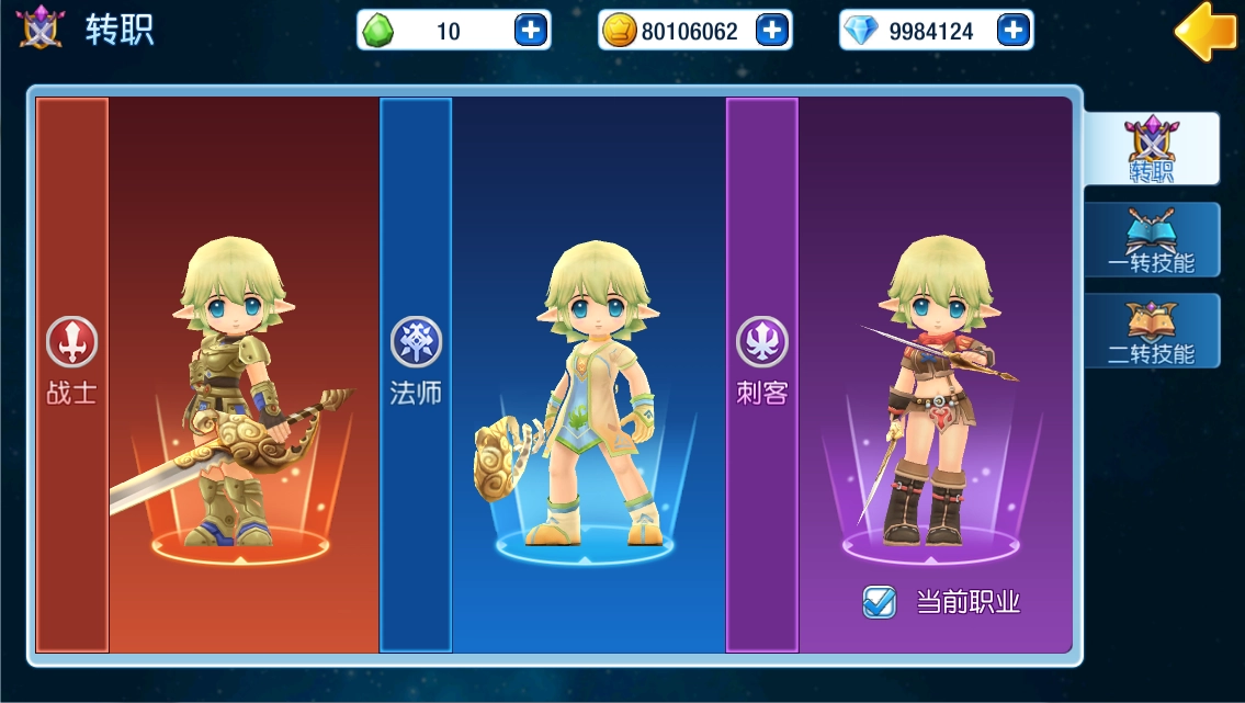 在露娜物语中,转职是什么呢?游戏里设有战士、法师、刺客这3种一转职业,并且每个一转职业均能开启两个二转职业。无论是一转职业还是二转职业,玩家都能够自由切换、灵活挑选,从而获得丰富的游戏体验。