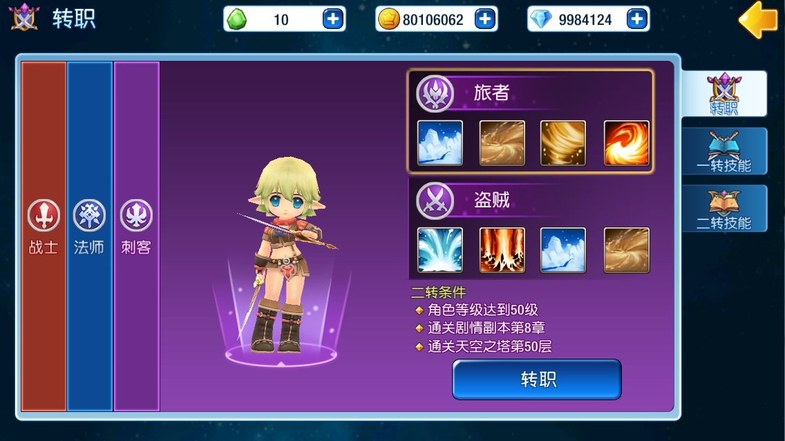 战士转职信息:(二次转职可选择的职业为:斗士、卫士)