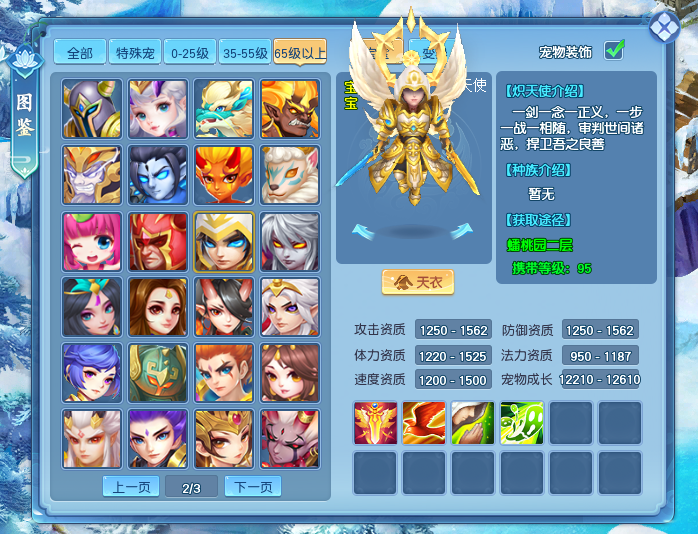 宠物图鉴依据携带等级,把所有宠物分成了四个主要类别:0到25级、35到55级、65级及以上,还有特殊宠物。前两个类别里的宠物大多是前期用来过渡的伙伴,对于刚踏入江湖的新手来说有着非常重要的参考意义。