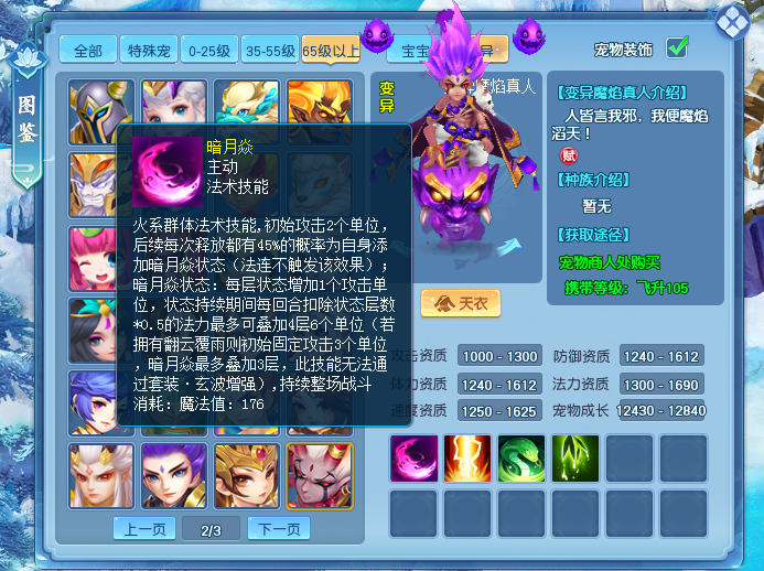 若想知晓某只宠物的资质范围、获取途径和技能池,图鉴里都有明确介绍。更为实用的是,点击顶部的“变异”按钮,还能查看该宠物变异后的详细信息,帮助你进行全面规划。