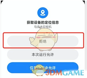 3、禁止应用获取定位权限:开启“马克水印相机”应用,启动期间,系统会弹出询问窗口,询问是否允许该应用获取定位信息。此时,选择“拒绝”选项,或者直接关闭“定位权限”,如此就能防止应用使用实时定位功能。
