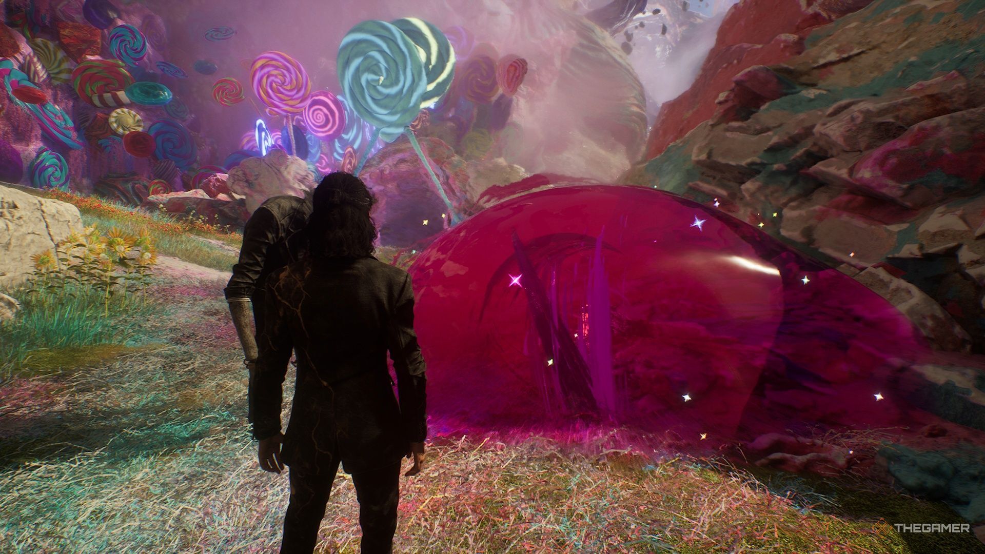进入被棒棒糖环绕的大洞穴即可来到糖果乐园。从进入该区域的位置向左下山就能找到。
