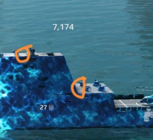 由此可见,猪母的防空力量主要集中在舰体尾部两侧,这使得舰体向前行进时防空能力极为薄弱。因此,我们需要将舰体横向转向,直面敌方。