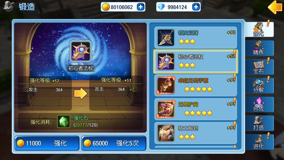 在锻造装备进行强化操作时,需要使用强化石。强化石可通过分解装备获取,也能够通过挑战副本或前往商店购买得到。