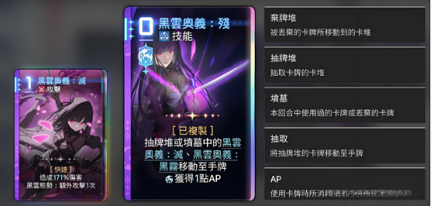 - 灭:0费高效输出卡,配合手牌可打出连击组合。