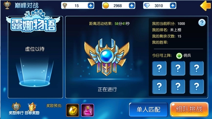 巅峰对决属于跨服3V3玩法,于每周三及每周六的21点准时开启,时长为一小时。每次活动期间,萌主们有15次参与机会。每次战斗仅能携带活动开始前刷新的指定系别佣兵,每场战斗限时300秒。若时间结束时仍未分出胜负,那么剩余血量高的一方将赢得胜利。因此,萌主们在战斗过程中务必留意保存自身血量。
