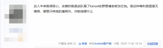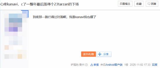赛后,部分玩家将批评的矛头对准了TES战队的打野选手Kanavi,指责他在比赛中“划水不出力”。相关讨论在贴吧引发了广泛关注,截至目前,标题为“巨型吞金兽Kanavi,7年狂捞1个亿”的话题实时讨论量已达126.8万,登上贴吧热搜第三位。