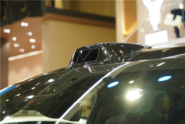 而车顶的华为激光雷达和左右两侧的小蓝灯,代表泰山将支持高阶辅助驾驶功能。