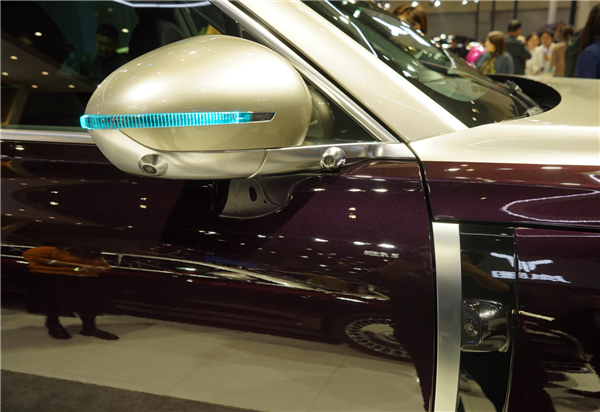 此外,从安全和实用等多维度考虑,岚图泰山没有采用全隐藏式门把手,而是使用了半隐藏式,且门把手处融入了“星汉璀璨”的设计元素,为整车的华贵设计氛围增色不少。