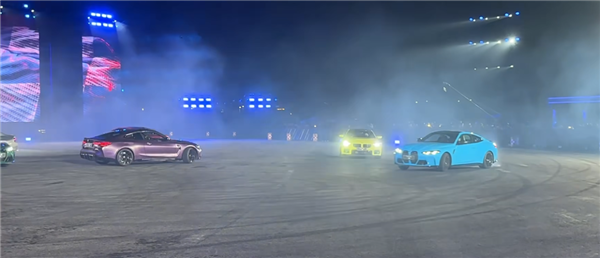 宝马 M 性能部门下的几乎所有车型排着队在场地里漂移,M2 漂完 M3 漂,M3 漂完 M4 漂。