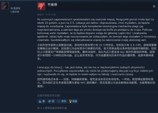 给出差评的玩家大多认为这款DLC制作得太过仓促,剧情上呈现出虎头蛇尾的问题,而且游戏流程也比较短,同时它的BUG问题也相当严重。