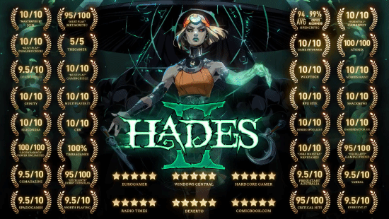 今日,Supergiant Games官方发布了《哈迪斯2》的媒体好评汇总。从汇总内容可见,众多媒体为本作打出了满分评价,其余评分也大多在95分以上,仅有OC站的平均分是94分。