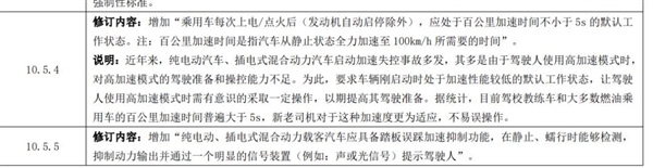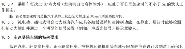 有关车辆性能方面,作出了明确限制:规定乘用车每次启动后应默认处于百公里加速时间不少于5秒的状态。