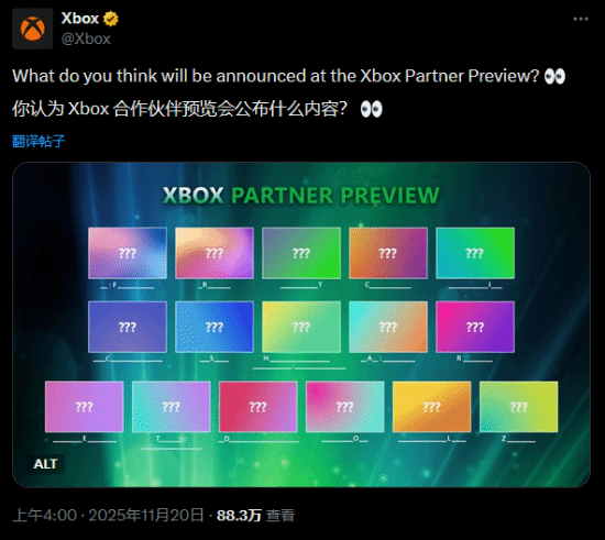 前阵子,微软官方发布消息称,会在北京时间11月21日凌晨2点召开Xbox Partner Preview发布会,此次发布会的重点内容是展示第三方合作伙伴带来的游戏。