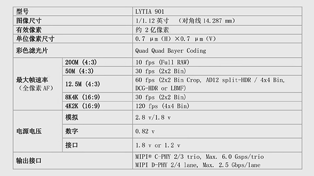 LYTIA 901 配备 0.7μm 像素间距,搭载 1/1.12 英寸大尺寸传感器,有效像素约达 2 亿。借助像素结构与彩色滤光片的优化升级,其饱和信号量得到提升,进而增强了动态范围性能。