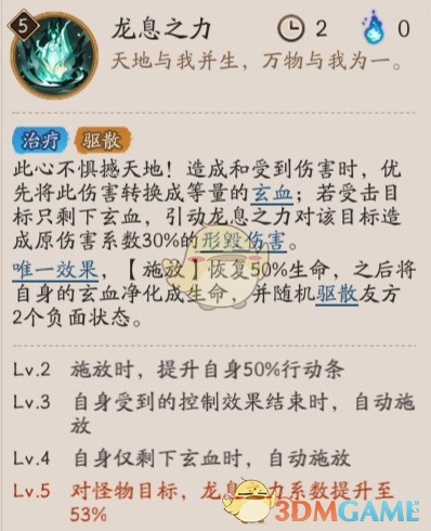 Lv.5时,针对怪物目标,龙息之力的系数提高到53%。