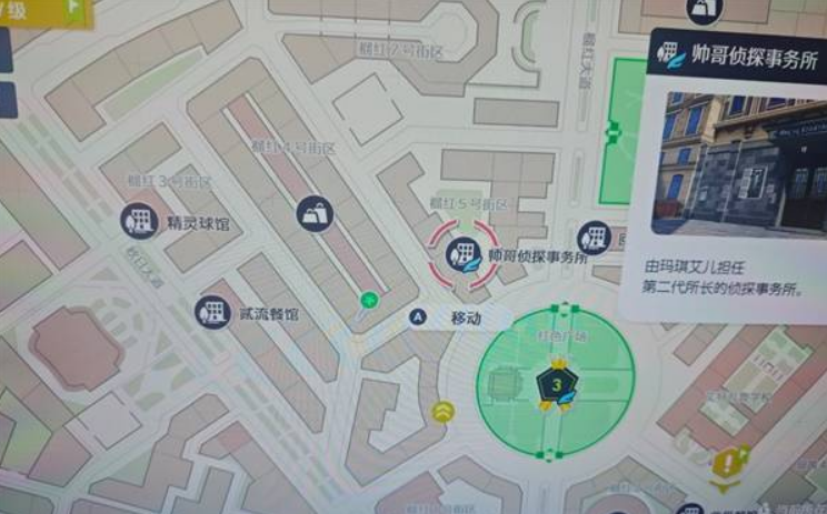 利欧路的位置在标绿点的区域,大家可以先传送到侦探所,然后反复跑过去上楼梯刷。每次刷出来的个体都有差异,有时会遇到头目,或者等级、性别不同的情况,这说明是有概率遇到闪光个体的。我从12点开始尝试,大概跑了七十多次,可能运气比较好,成功遇到了闪光利欧路,亲测这个方法是可行的。