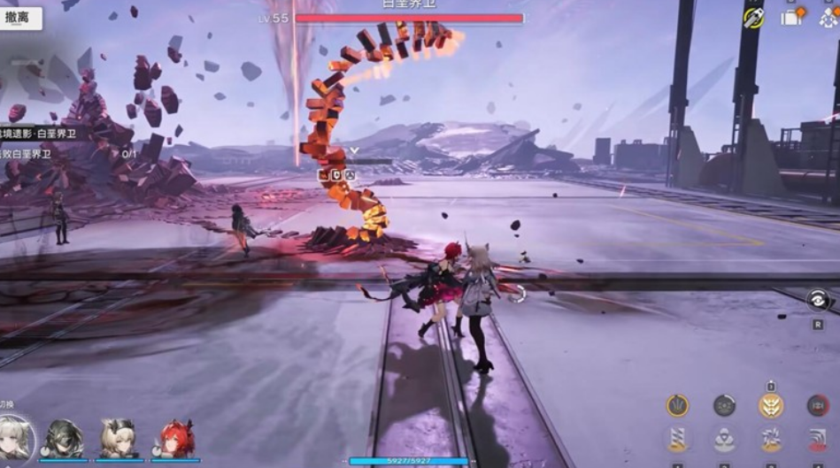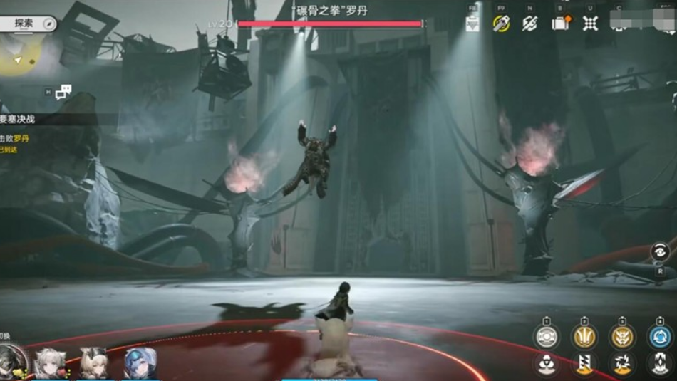 战斗的节奏把控起来比较清晰,第一阶段要重点留意BOSS的践踏技能,当地面浮现出扇形红区时,得横向移动两个身位来躲开。在它使出双拳连击之前,会有很明显的右手抬起的动作,这时候要马上切换到管理员角色,用瞬击碎轰技能打断这次攻击,这样就能很好地避免承受高额伤害了。等BOSS的血量降到大约三分之二的时候,就会进入第二阶段,场地里会出现带有牵引效果的红色区域,要是碰到了就会被减速,还会损失差不多一半的血量,所以一定要及时绕开这些区域。