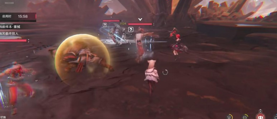 这场战斗对走位的要求非常高。在第一阶段,主要需要应对地面上标记出的酸性区域,一旦踩上去就会持续掉血,所以得提前做好预判并及时远离。当BOSS的身体膨胀起来时,虽然此时无法对它造成伤害,但可以切换到余烬类角色,释放治疗技能来维持整个队伍的状态。