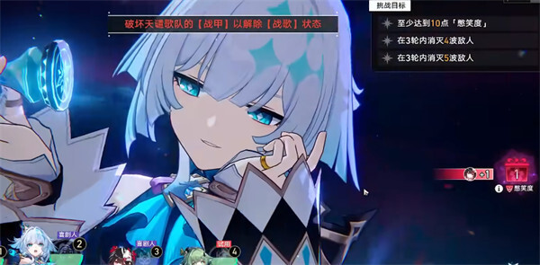 2、挑战目标:憋笑度需至少达到10点;在3轮内消灭4波敌人;在3轮内消灭5波敌人。