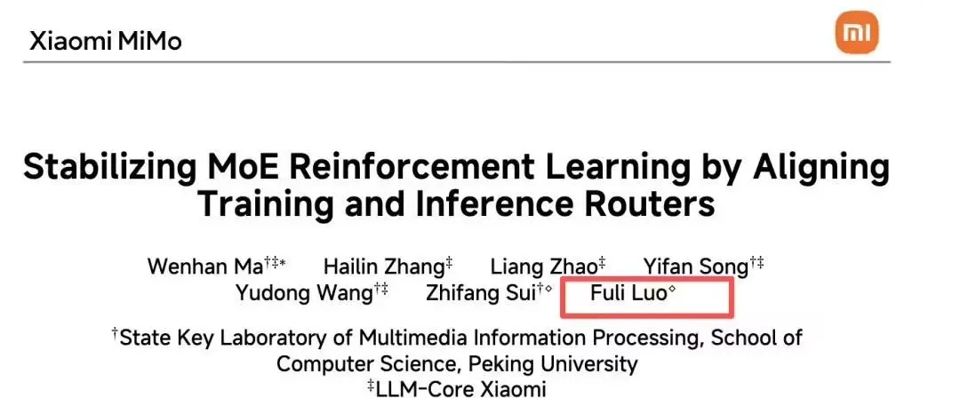 值得一提的是,今年10月,小米与北京大学联合署名的论文在arXiv平台发布时,罗福莉就已是该论文的通讯作者之一。