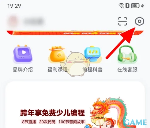 1. 开启“猿编程”,轻点右上角的设置图标。