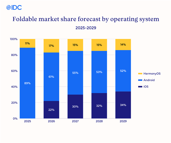 IDC预计,到2025年全球折叠屏智能手机的出货量将达2060万台,较上年增长10%;同时该机构指出,由于硬件技术的创新以及行业巨头的加入,2026年有望成为这一市场真正迎来转折的关键年份。