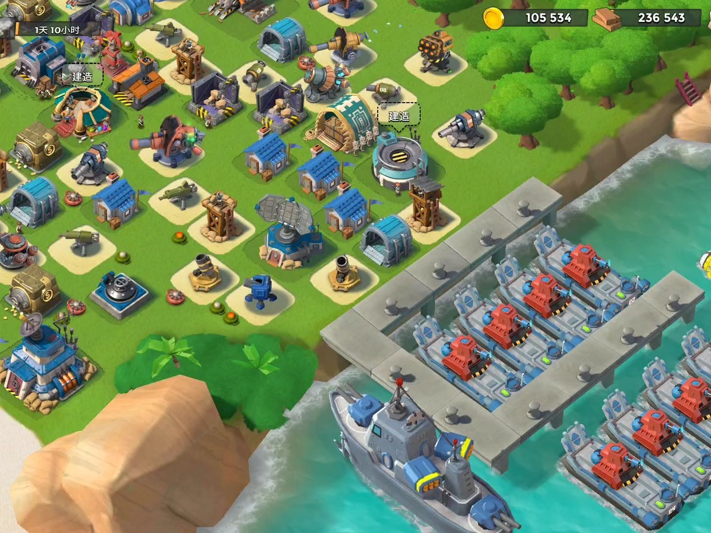 《海岛奇兵》里有着各式各样的兵种,每个兵种都具备与众不同的技能与特性。玩家得依据不一样的战斗要求,科学搭配兵种,规划出最具成效的战斗方案。而且,游戏中还有各类作用不同的建筑,像资源产出建筑、防御工事之类,玩家要合理安排建筑的摆放位置,增强岛屿的整体防御水平。游戏里的战斗是按照回合制的方式来开展的。玩家需要在规定的时间内,借助手里的兵种和建筑,布置出最优的防御阵线,抵御敌人的攻击。与此同时,也要把握机会,发起反攻,捣毁敌人的基地。在战斗过程中,玩家必须密切留意战场的局势,灵活变动战术,这样才能够获得胜利。