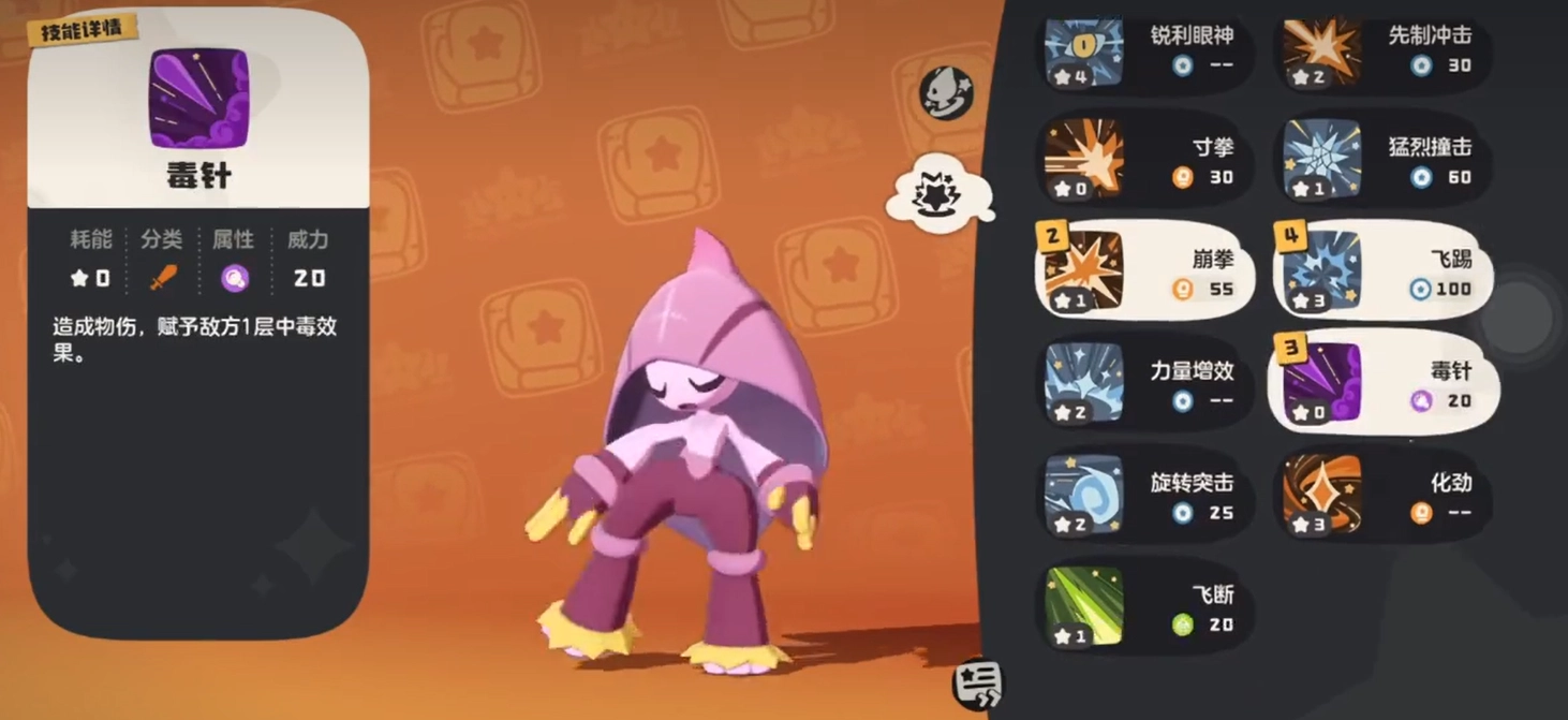 在性格的挑选上,建议选择固执(增加物攻)或开朗(增加速度)。拥有固执性格的格斗小五,爆发力十分惊人,攻击更具杀伤力;而开朗性格能够确保它在战斗中夺得先机,率先出手,使敌人难以招架。至于特性,能量积蓄是个不错的选项,通过普通攻击来叠加层数,每层可提升5%的技能伤害,也就是说,依靠普通攻击就能逐步提升技能的威力。战斗开始时,可先施展瑜伽之型来叠加攻击等级,随后用炎爆拳或近身拳打出高额伤害。