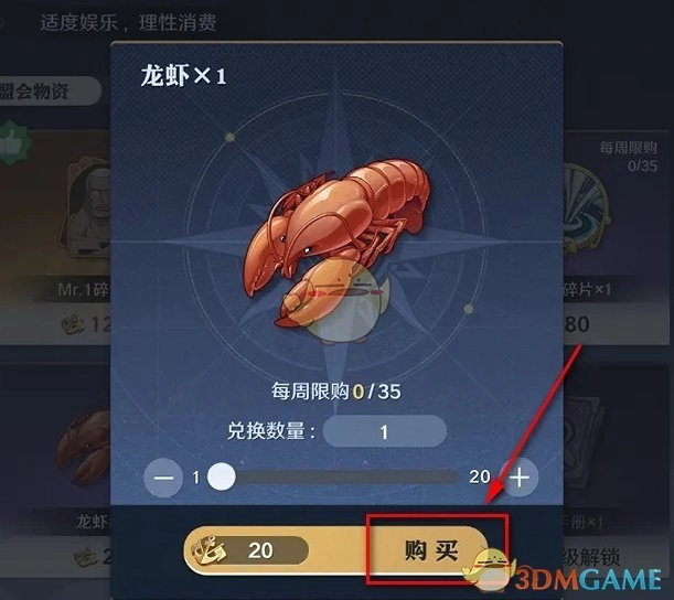 3、最后仅需花费货币,就能购买得到龙虾道具。