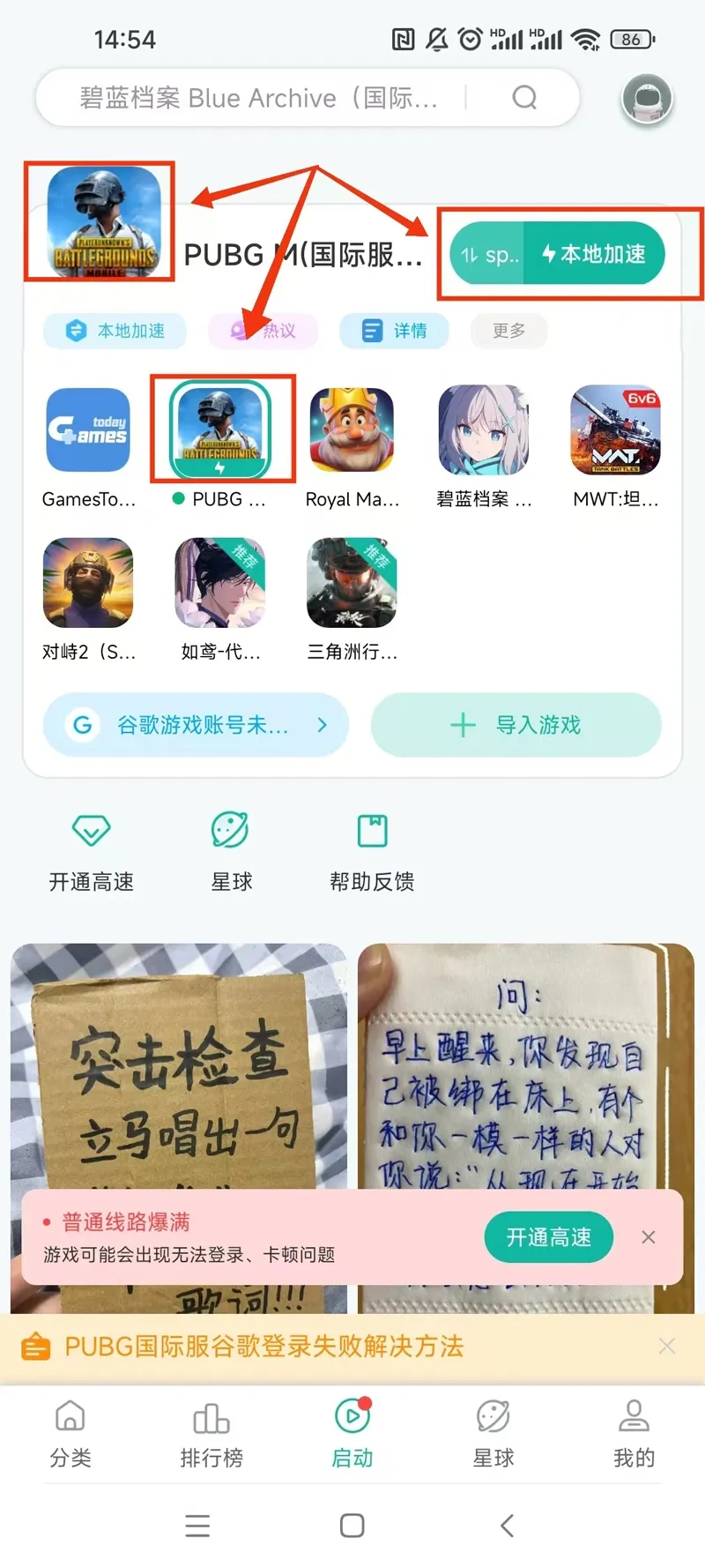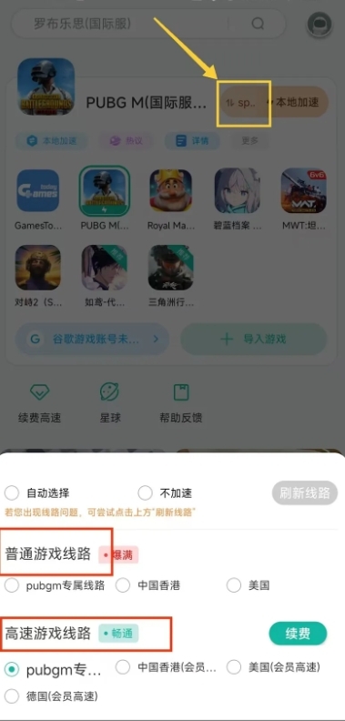 安装完毕后,返回到 首页。找到“我的加速”模块(一般展示在首页中央或“游戏库”页签),你会看到刚刚下载的《PUBG手游》图标。点击游戏图标后,会弹出加速选项: