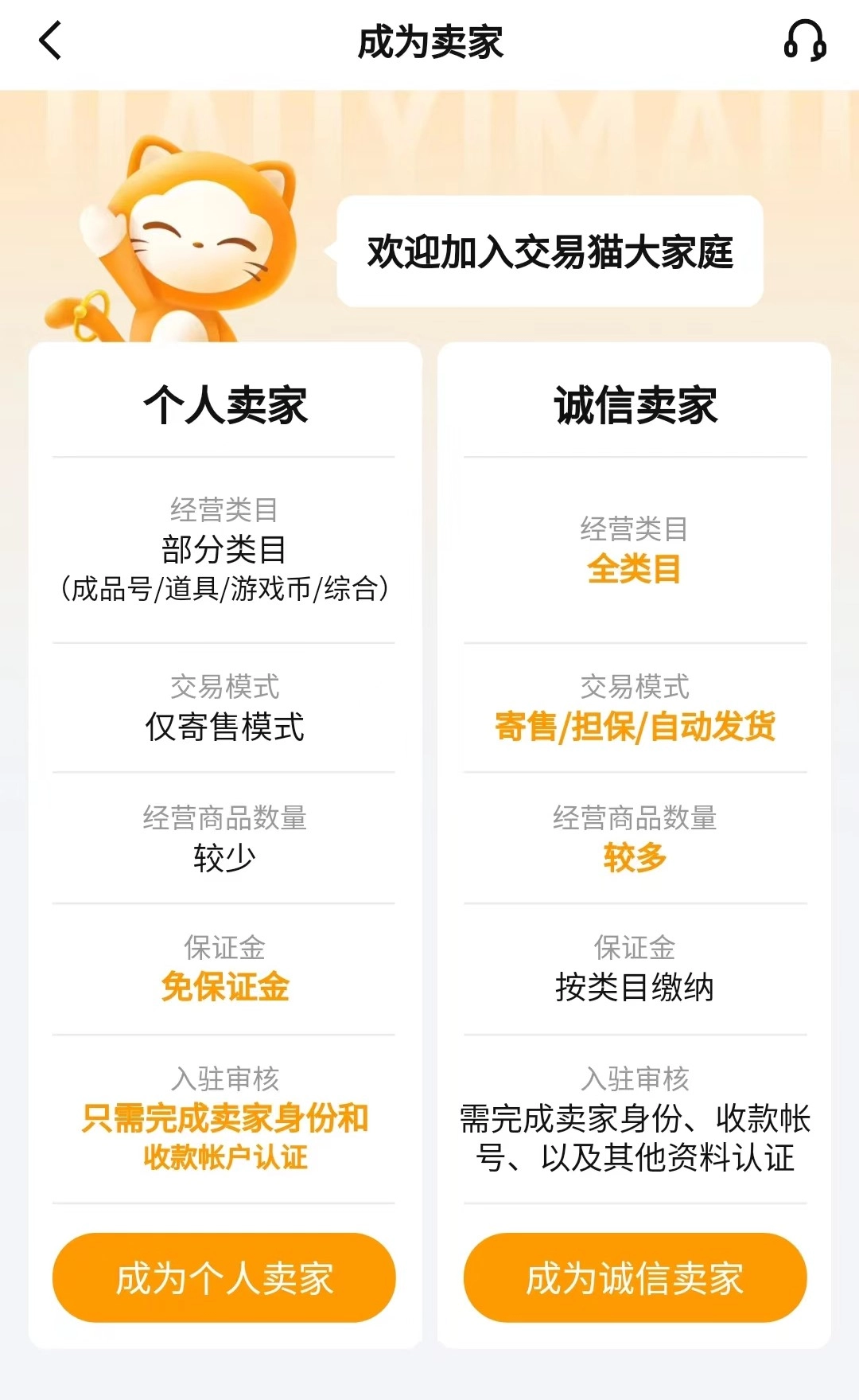 玩家若想出售自己的账号,需先申请成为卖家,可自行选择成为个人卖家或诚信卖家。个人卖家无需缴纳保证金,但能经营的商品类目相对有限。而成为优质诚信卖家的话,还能获得平台寄售的权限,这能显著减轻卖家的压力。通过平台寄售,卖家不用时刻留意商品状态,由平台负责对接买家,卖家只需在交易结束后收款就行。此外,寄售卖家还能享受更多权益与服务,可选范围也更宽泛。