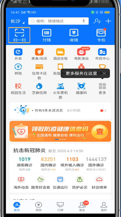 3、找到“扫一扫”功能,打开后就能扫描健康码了