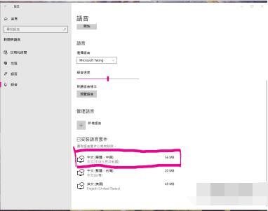 4. 需将最下方的语言和语音均下载为中国简体中文。若未下载美国键盘对应的英文语音包,则无需调整顺序;若已下载该英文语音包,需将简体中文移动至首位。