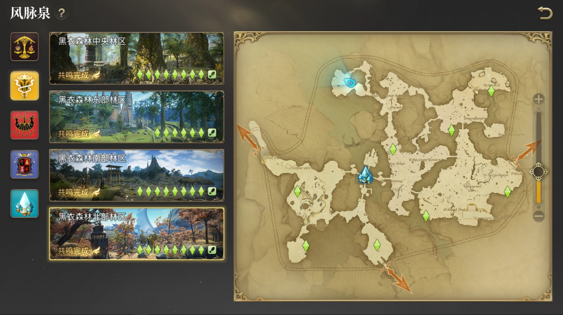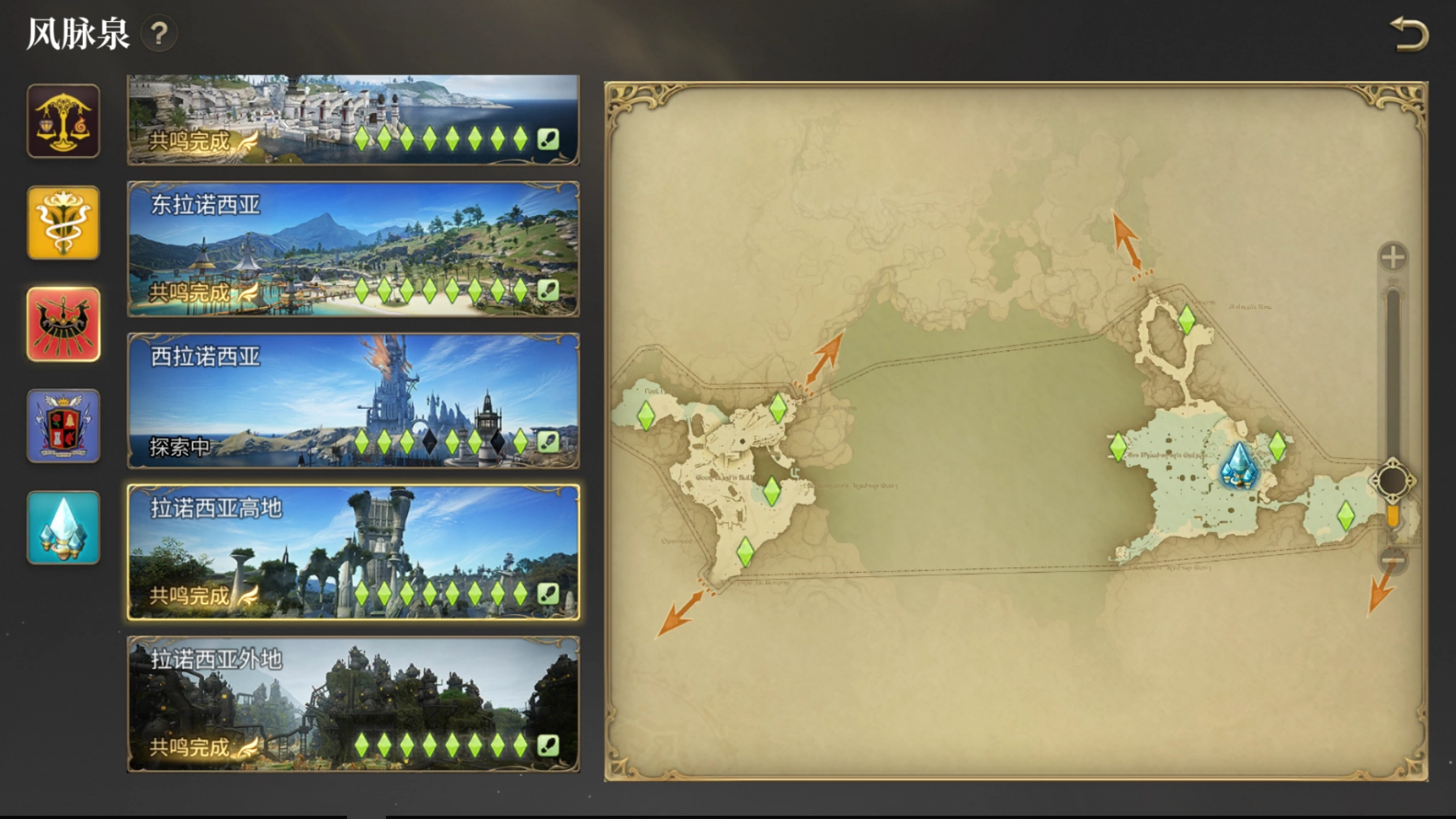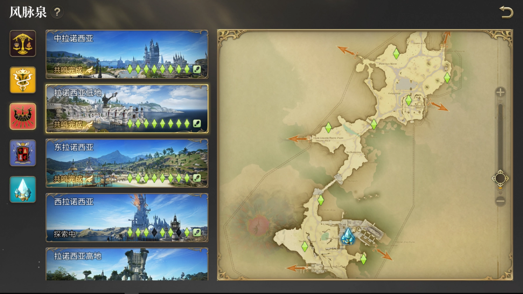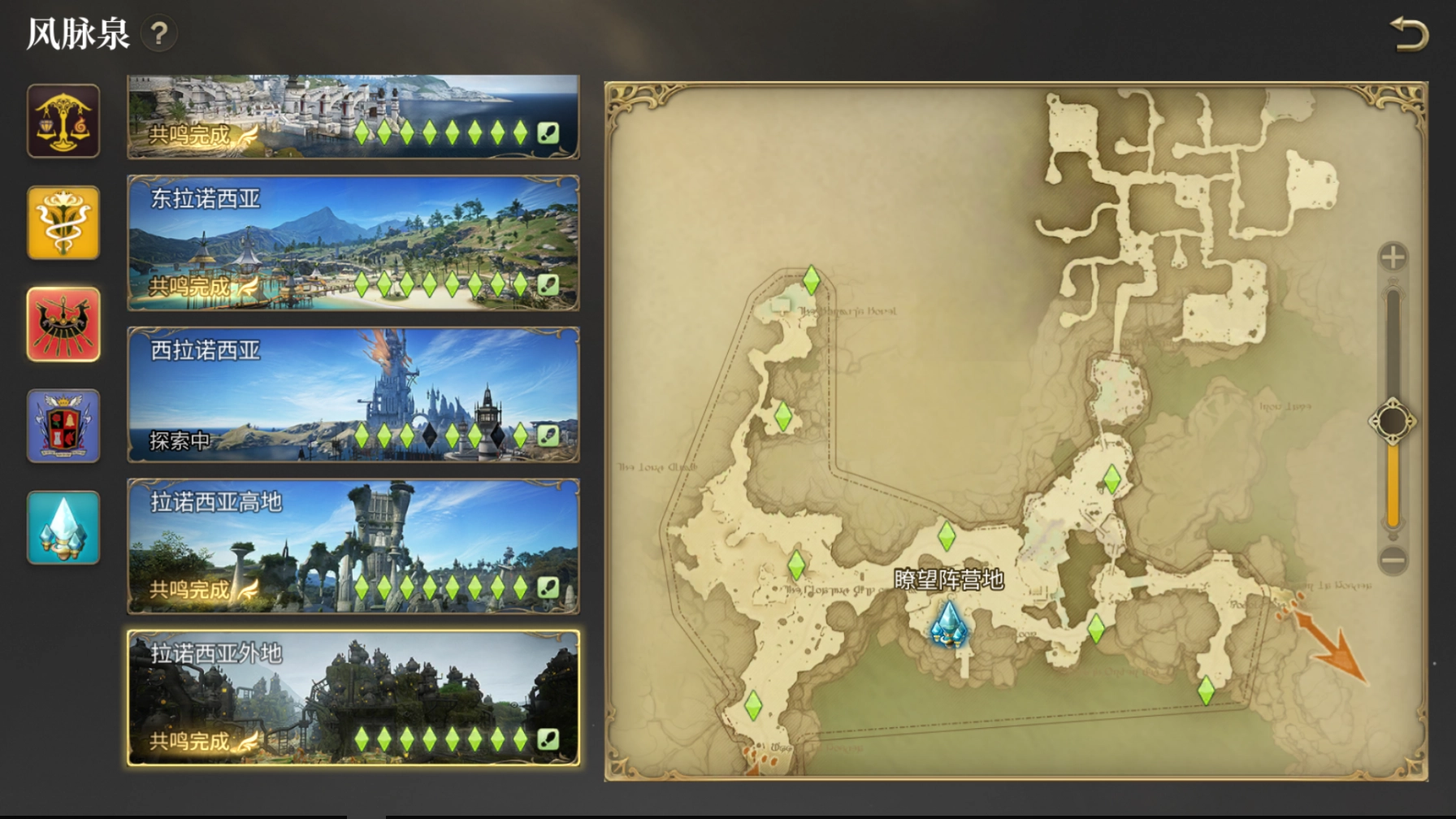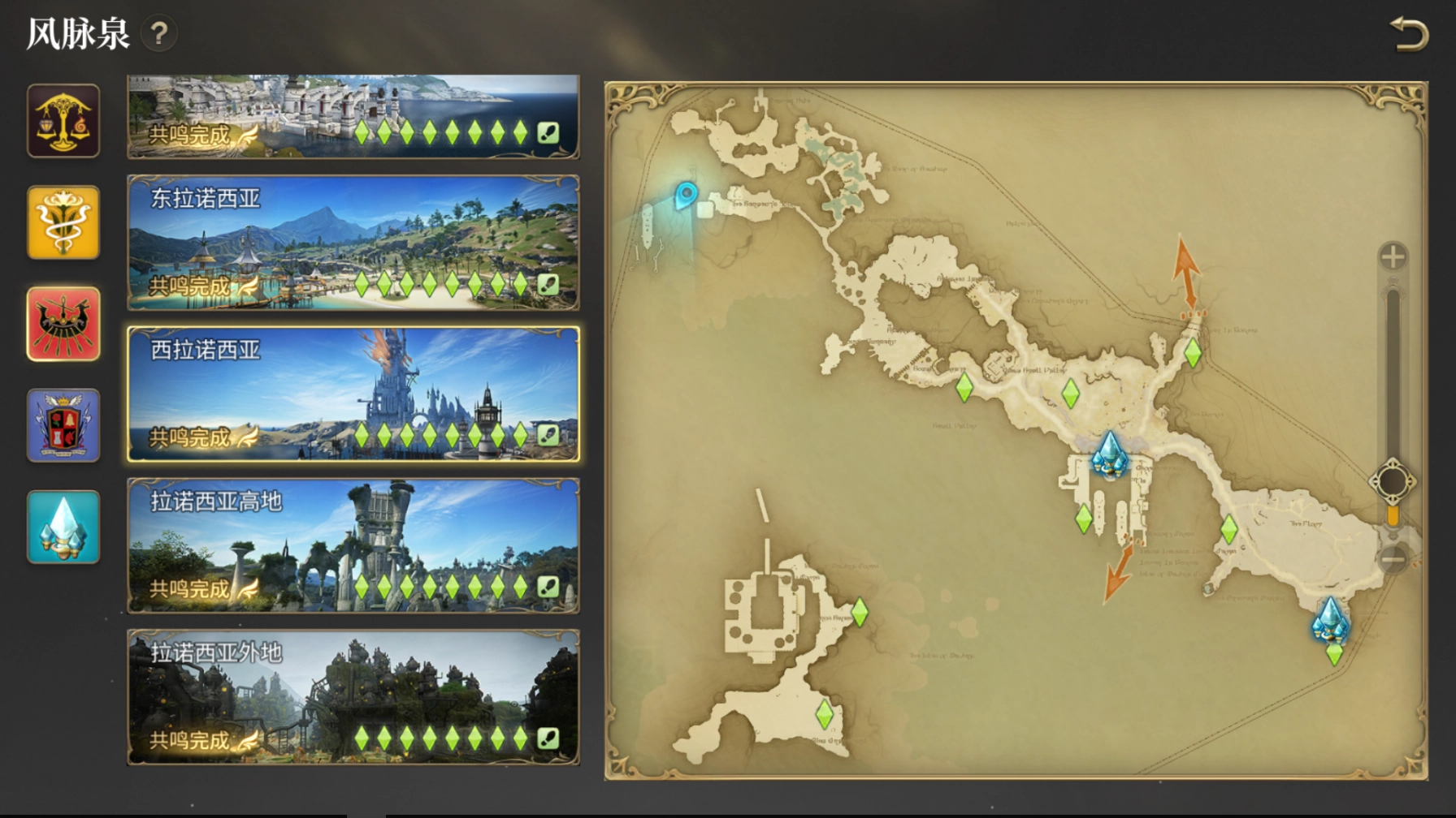 在此为各位呈现全风脉位置的地图,按图前往对应地点获取风脉,省时又省力。各个地图会随着主线任务的推进而解锁,也能通过其他地图连接或者乘船抵达。要是有暂时去不了的地方,无需心急(幻影群岛在42级主线“才、才不怕鬼!”时解锁),专心做主线就行~