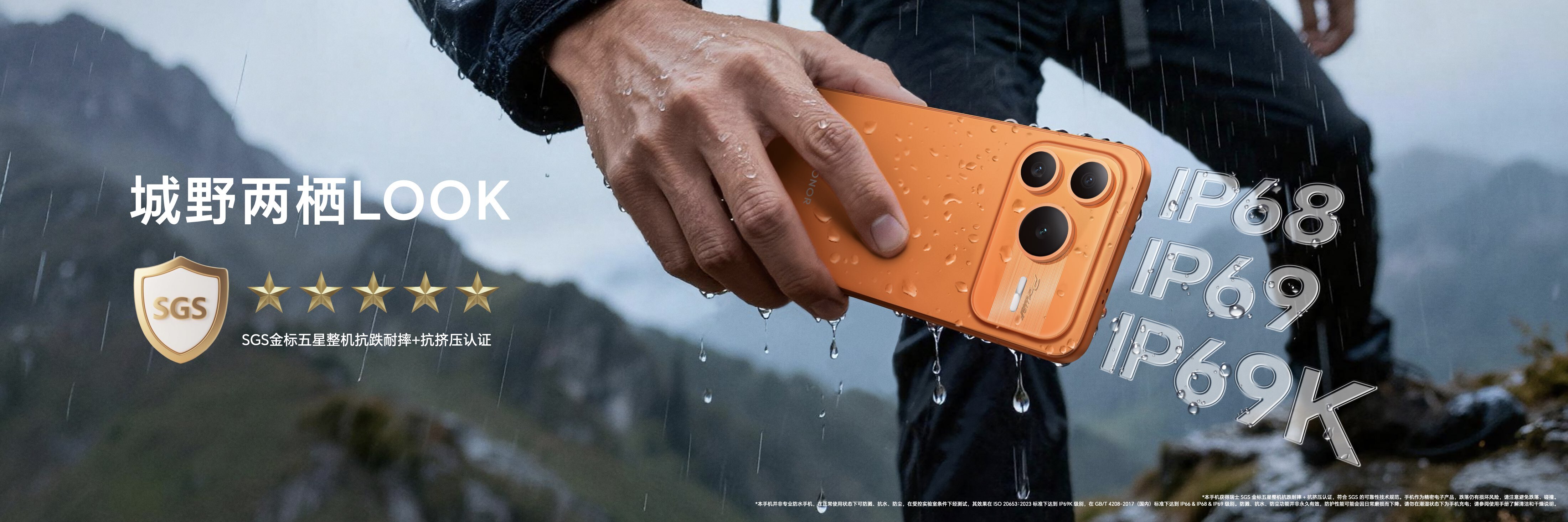 荣耀Power2在防护性能上同样下了大功夫:中框运用四角榫卯卸力结构设计,通过了SGS金标五星整机抗跌耐摔与抗挤压认证,对标旗舰机型水准;达成行业内IP68、IP69及IP69K的最高防水标准,能够抵御超高温、超时长的环境考验,以及10000次以上的反复入水和18种不同液体的侵蚀。