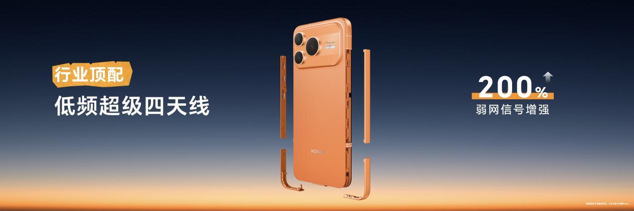 一方面,这款机型选用了与高端旗舰Magic8系列同款的鸿燕六翼天线系统,通过25根天线实现中框天线100%占比,Wi-Fi天线尺寸较常规提升30%,可有效减少不同功能信号间的相互干扰,显著增强信号收发的稳定性;不仅如此,它还不惜成本地采用了行业首创、连主流旗舰都未配备的平行双轨天线设计,打造出行业顶尖的低频超级四天线,弱网环境下信号表现提升200%,通信能力超越行业主流旗舰机型。即便身处电梯、车库、地下通道等信号薄弱的场景,也能保障通话流畅清晰。另一方面,该机型搭载GPS双频与北斗三频多源融合的定位引擎,大幅提升户外定位精度,即便在郊区或野外也无需担心迷路问题。