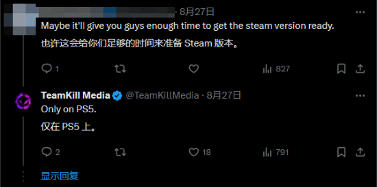 值得一提的是,作为一家知名度不高的游戏厂商,开发商TeamKill Media此前曾多次强调,这款作品是PS5独占游戏,不会登陆Steam或其他平台。