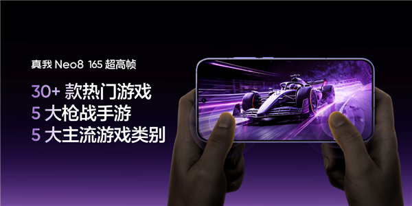 目前,真我Neo8已针对《三角洲行动》《和平精英》等五款热门枪战手游在内的超30款主流游戏,实现原生165帧模式支持,全面覆盖FPS、MOBA、竞速、格斗、音游五大品类;同时适配《王者荣耀》《无畏契约:源能行动》的原生144帧模式,全力打造顶级超高刷游戏体验生态。