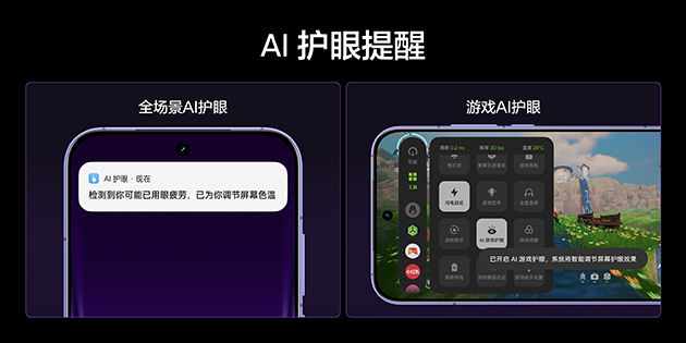 真我Neo8借助“全亮度DC调光、硬件级低蓝光与智慧护眼”的软硬件协同机制,打造了覆盖全场景的护眼体验。其屏幕配备全亮度DC调光技术,SVM值低至0.05,频闪程度已接近“零”,且通过了TÜV莱茵无频闪认证;智慧护眼功能融合了AI眼疲劳监测守护、舒眠模式以及环境色自适应调节,能够智能匹配不同的使用场景,即便长时间用眼也能保持舒适。同时,依托M14基材的光谱特性优势,真我Neo8从根源上实现了硬件级的低蓝光控制。在此基础上,真我还搭载了AI主动护眼体系,涵盖全场景AI护眼与游戏AI护眼功能,在确保用户获得沉浸使用体验的同时,提供更全面、更智能的视力保护。