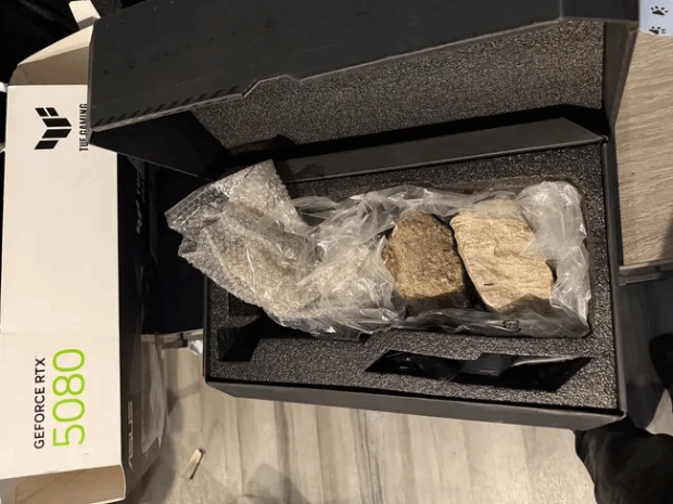 在此前的硬件情报站中,我们曾报道过一国外网友在Best Buy花费约1200美元购买了RTX 5080显卡,到货开箱后竟变成了一堆沉甸甸的石头。如今在经过长达一个月的维权博弈之后,这起事件终于尘埃落定。
