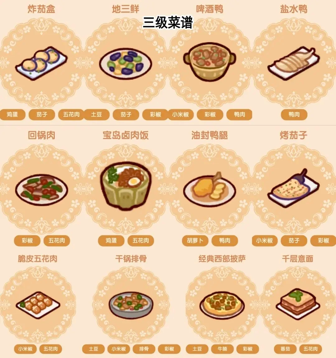 版本更新后,菜谱有了变动。若发现所需材料与攻略不一致,再次尝试时请务必谨慎。