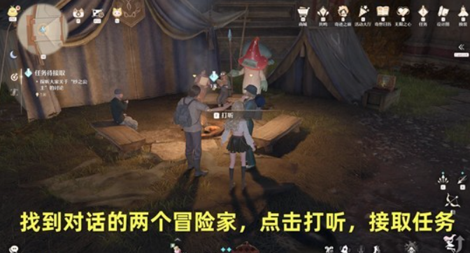 找到两位正在交谈的冒险家,点击“打听”选项,接取对应的任务。
