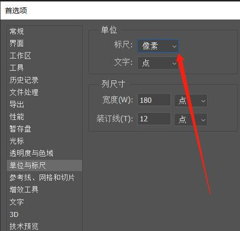 接下来点击里面的“单位与标尺”选项。